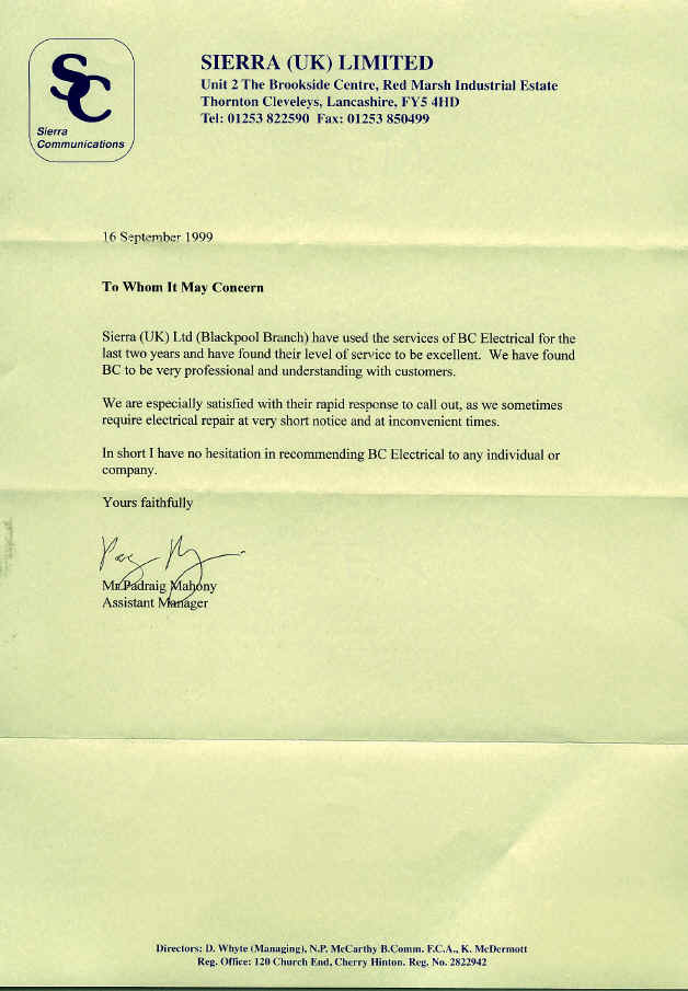 Letter From The SIERRA UK Ltd